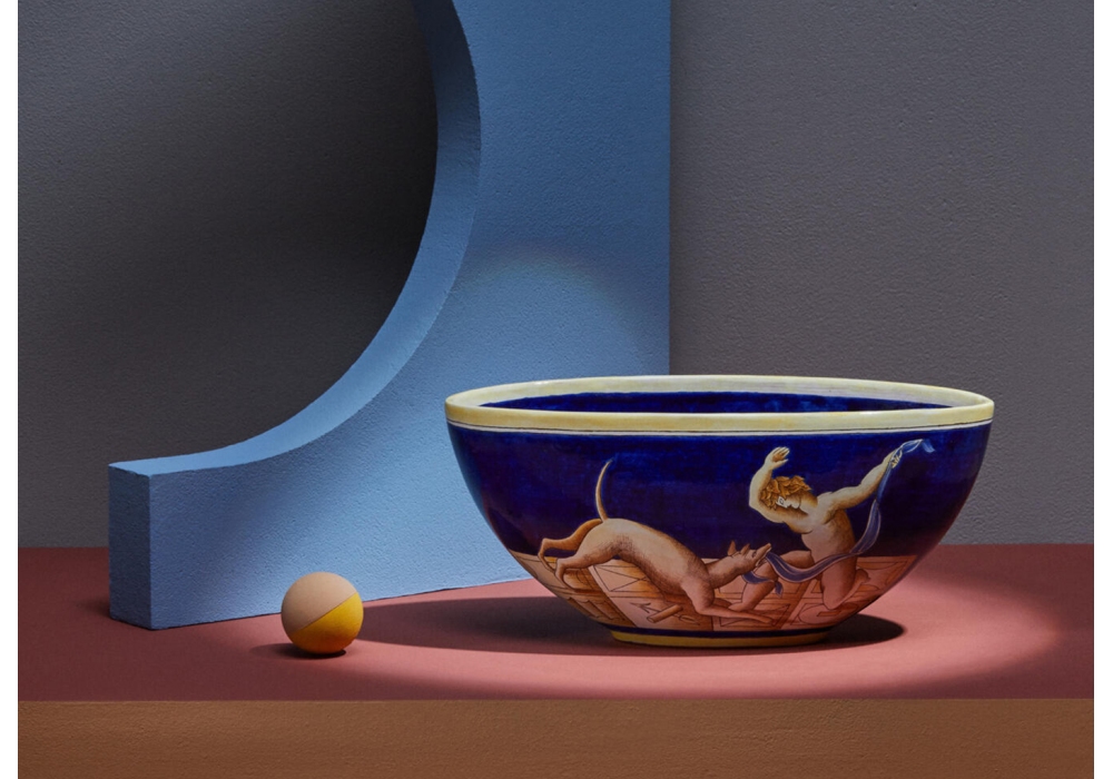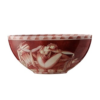 Coppa Gio Ponti, La Conversazione Classica von Gio Ponti für Ginori 1735 entworfen, ist eine dekorierte Schüssel aus Majolika. In „La Conversazione Classica“ bewegen sich die allegorischen Figuren, die auf die Kunst anspielen und in den Deco-Stil übersetzt wurden, auf einem Boden, der mit antiken Symbolen verziert ist, mit Perspektiven, die der Komposition Dynamik verleihen. Begleitend zu ihrer rhythmischen Anordnung im Bildraum wechseln sich Elemente archäologischer Herkunft wie Obelisken, Vasen und Ruinen mit Neuinterpretationen pompejianischer Malerei ab, mit in spielerischer Haltung gefangenen Putten. Verfügbar in 3 Ausführungen.