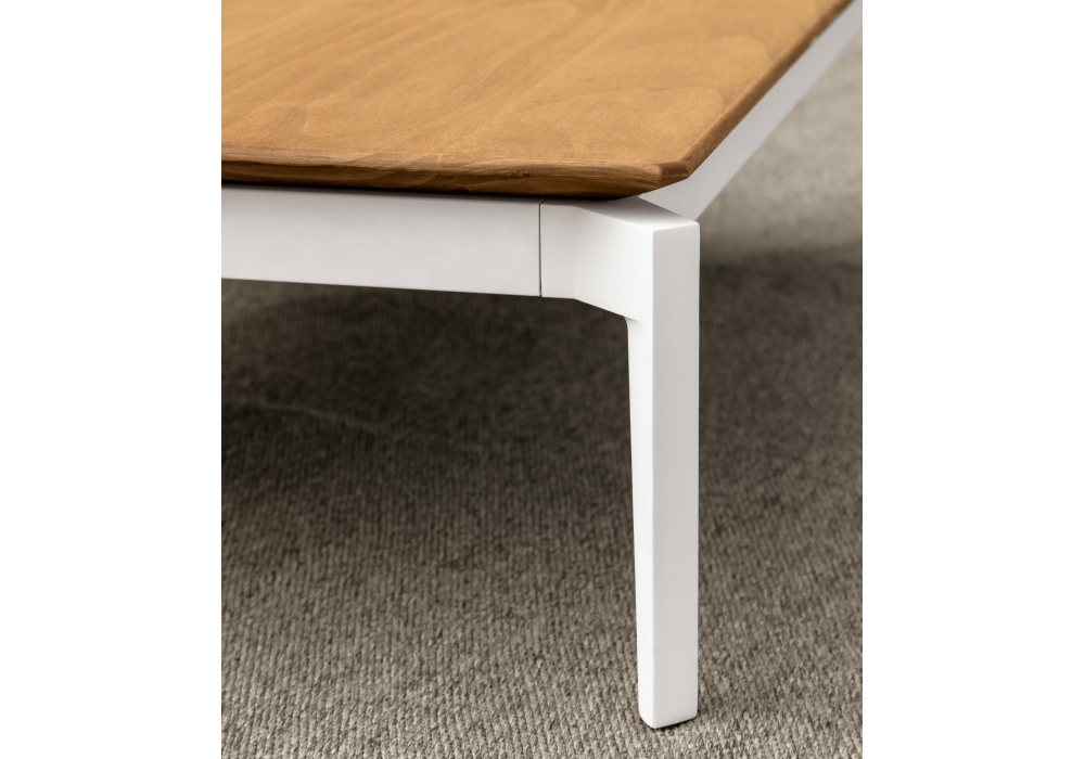 Leaf, von Marco Acerbis für Talenti entworfen, ist eine Couchtischkollektion für den Außenbereich, bestehend aus einer Basis aus Aluminium und einer Platte aus Vitter, die in mehreren Farben erhältlich ist.