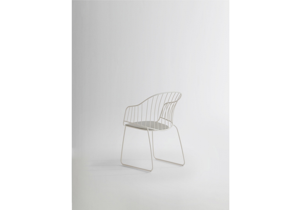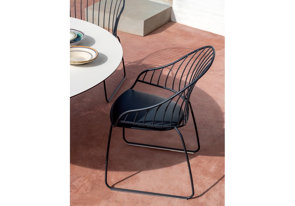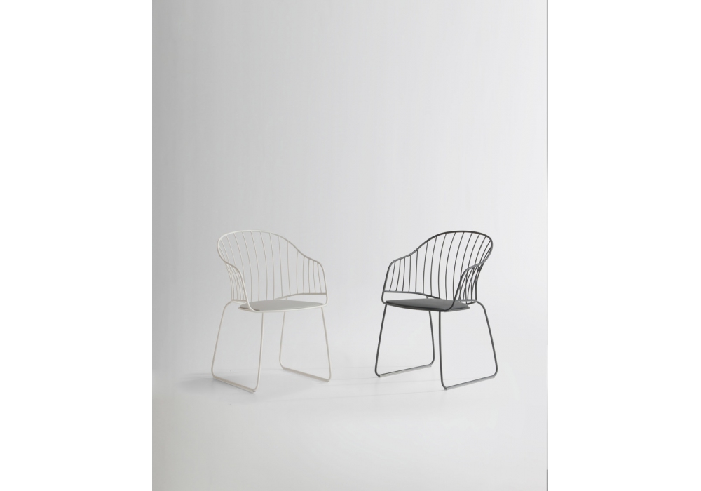 Alyza, von Mario Ferrarini für Potocco entworfen, ist ein Outdoor-Stuhl mit einer Struktur aus lackiertem Metallstab.