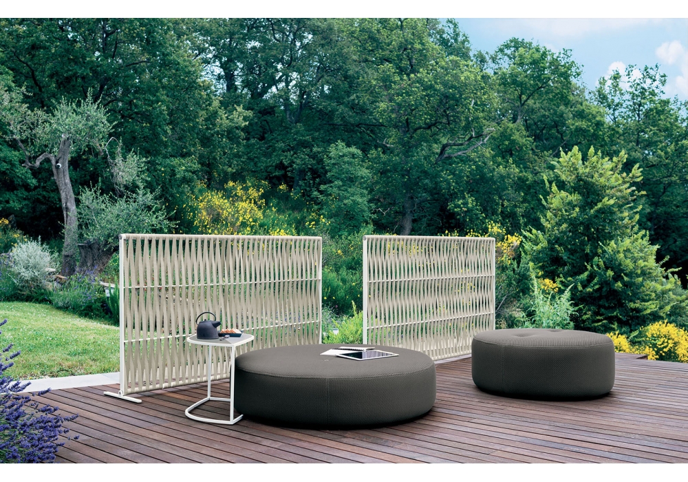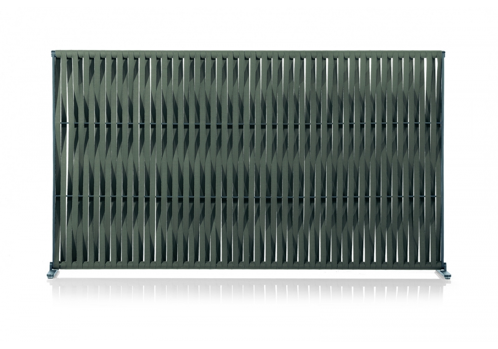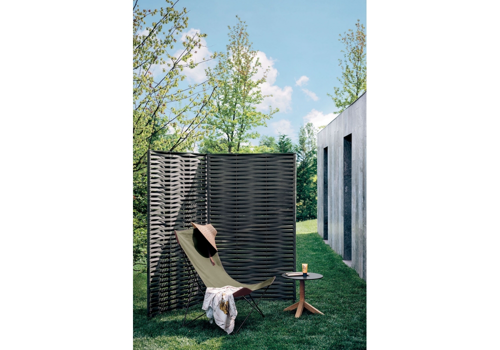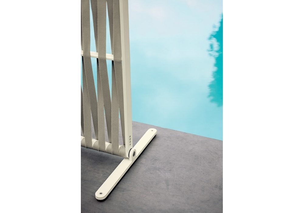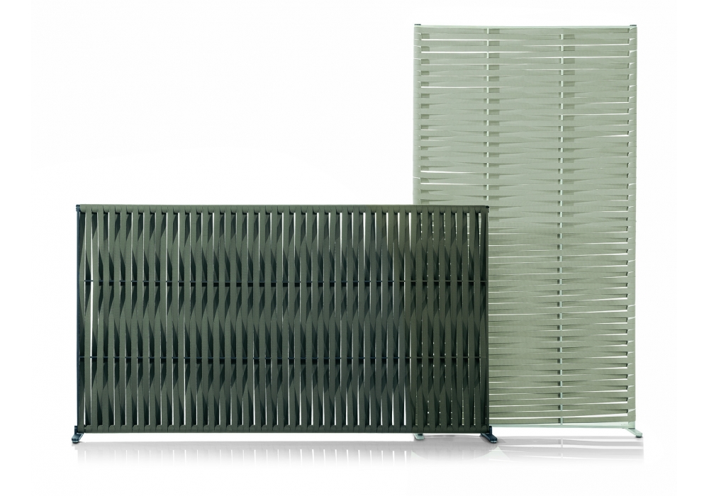 Wing, von Rodolfo Dordoni für Roda entworfen, ist einer Raumteiler realisiert aus Edelstahl pulverbeschichtet und Polyester Gurtung. Wing ist entworfen, um private Ecken im Garten oder auf der Terrasse zu schaffen, oder um Privatsphäre in Vertragsbedingungen zu bieten. Verfügbar in zwei Ausführungen und zwei Größen.