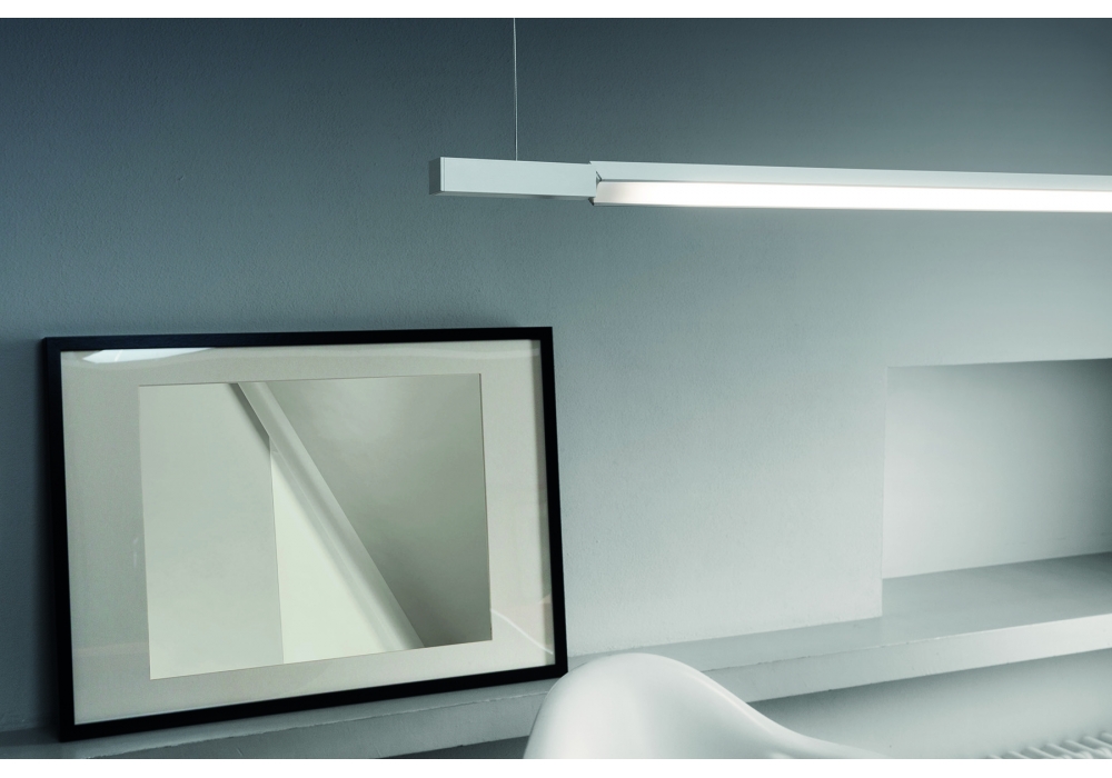Linescapes Horizontal, von Nemo Studio für Nemo entworfen, ist eine Hängeleuchte mit tragender Struktur aus lackiertem extrudiertem Aluminium. Der Diffusor ist aus opak weißem Polycarbonat und schirmt eine dimmbare LED-Lichtquelle in verschiedenen Lichtschattierungen ab. Linescapes Horizontal ist in verschiedenen Größen und Ausführungen erhältlich.