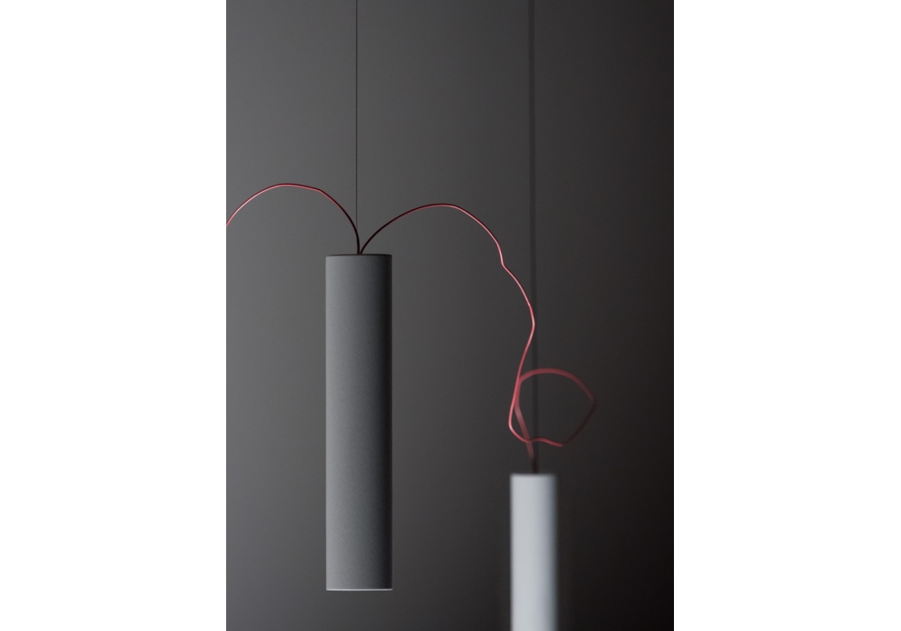 Simbiosi entworfen und hergestellt von Davide Groppi, ist eine Hängeleuchte, die aus mehreren Pendelmodulen aus mattschwarz oder mattweiß lackiertem Metallrohr besteht. Als Lichtquelle kommt LED zum Einsatz, die in verschiedenen Ausführungen und Lichtabstufungen gedimmt werden kann.