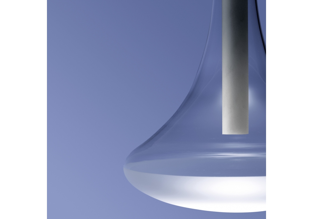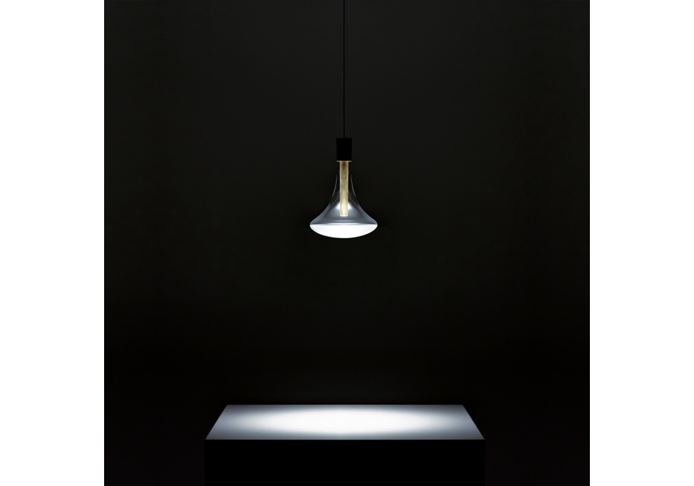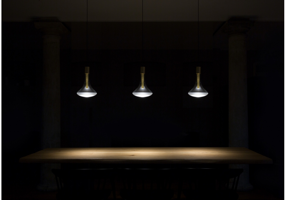 Cathode von Omar Carraglia für Davide Groppi entworfen, ist eine Pendelleuchte mit direktem Licht für den Innenbereich. Die Rosetten sind in strukturiert matt schwarz oder matt weiß lackiertem Stahl erhältlich. Der Messingkörper ist in verschiedenen lackierten oder galvanisierten Ausführungen erhältlich. Der Diffusor besteht aus transparentem, mundgeblasenem Borosilikatglas und ist an der Unterseite sandgestrahlt. Die Lichtquelle ist eine LED mit integriertem Modul. Das Stromkabel hat eine mattweiße Oberfläche, wenn der Lampenkörper weiß ist, während es bei den anderen Ausführungen schwarz ist.