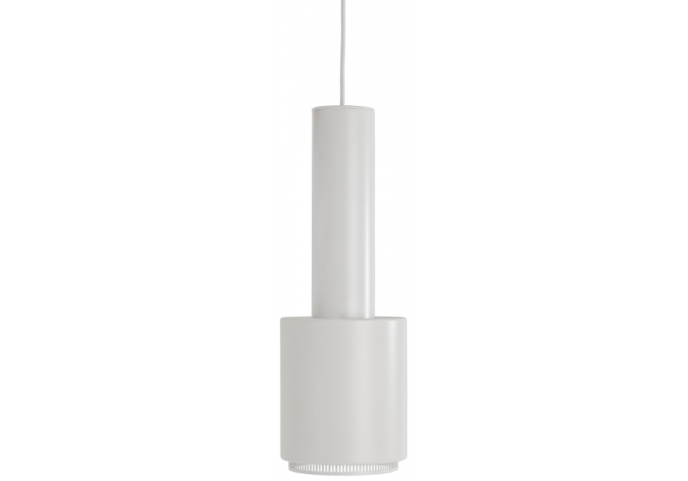 Die A110 Pendelleuchte, entworfen von Aalto für Artek, wird von zwei Zylindern gebildet wird, eine innerhalb der anderen in Stahl und in verschiedenen Ausführungen. Die Lampe hat einen perforierten Stahlring, durch den das Licht gestreut wird.