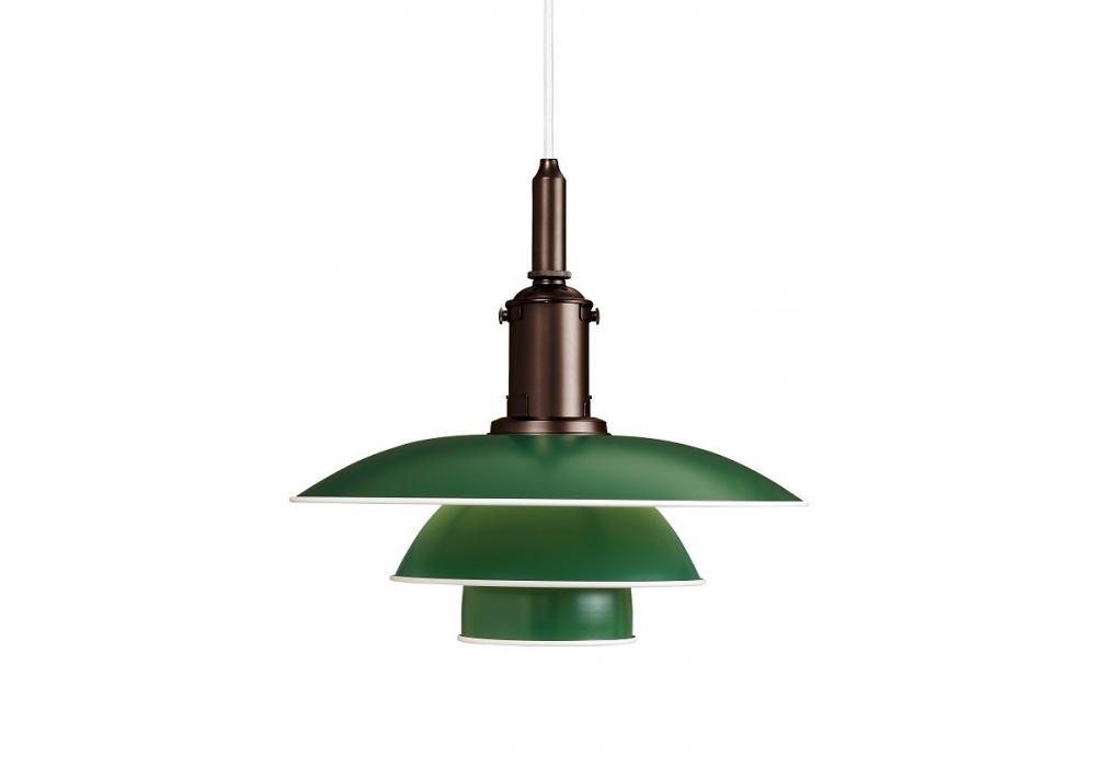 PH 3½-3 von Poul Henningsen für Louis Poulsen entworfen, ist eine runde Hängeleuchte mit Tragstruktur aus braun satiniertem Aluminium. Die Diffusoren sind aus pulverbeschichtetem Aluminium und schirmen eine LED- oder Halogen-Lichtquelle mit E27-Fassung ab. PH 3½-3 ist in verschiedenen Ausführungen erhältlich.
