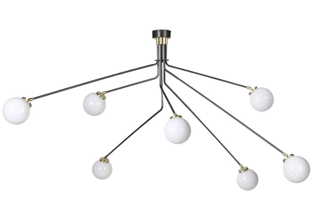 Array Opal von CTO Lighting entworfen, ist eine Hängeleuchte aus Bronze mit Details aus satiniertem Messing und Lampenschirmen aus Opalglas.