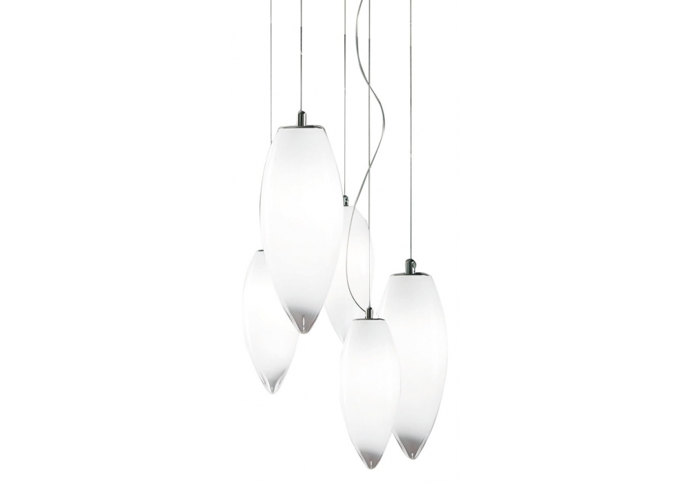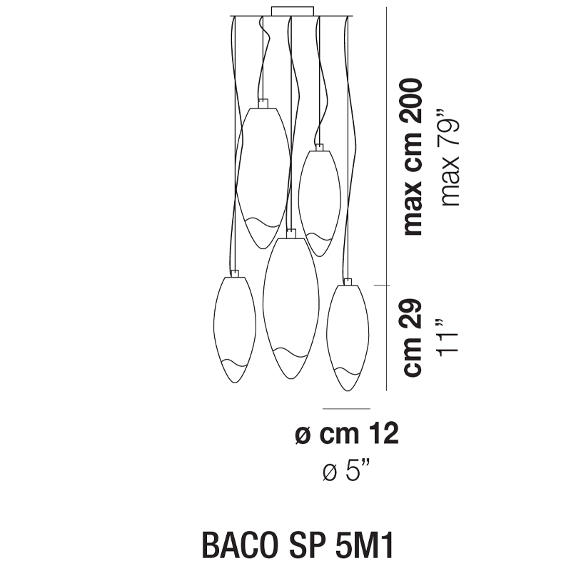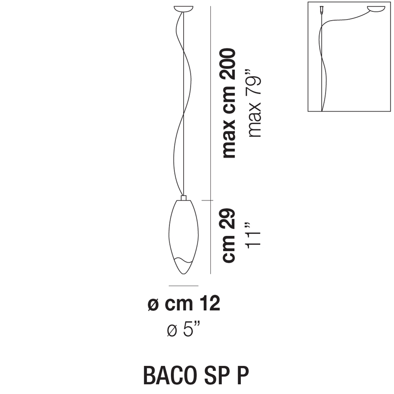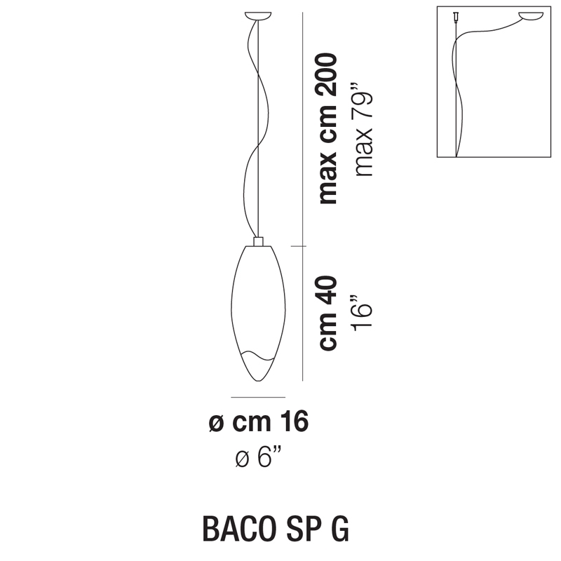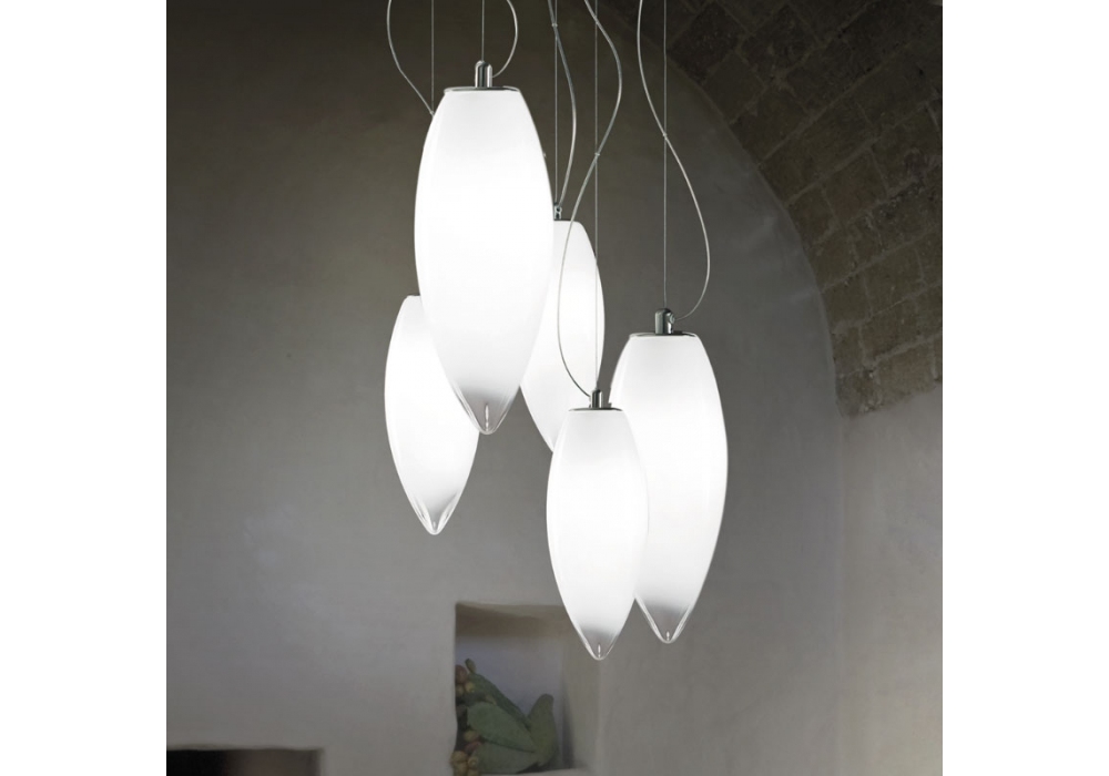 Baco von Mauro Olivieri für Vistosi entworfen ist eine Hängeleuchte die durch die Kombination von Metall und Muranoglas strukturiert ist. Der Diffusor besteht aus weißem, geblasenem Muranoglas und schirmt eine dimmbare LED- oder Halogenlichtquelle mit E27-Fassung ab. Baco ist in verschiedenen Modellen erhältlich.