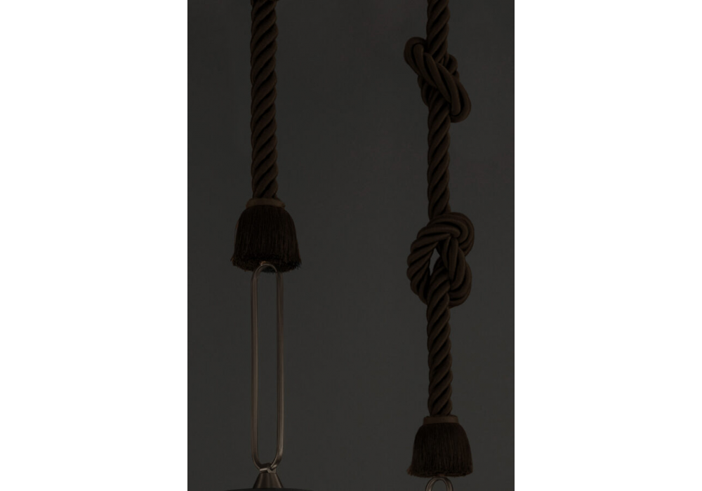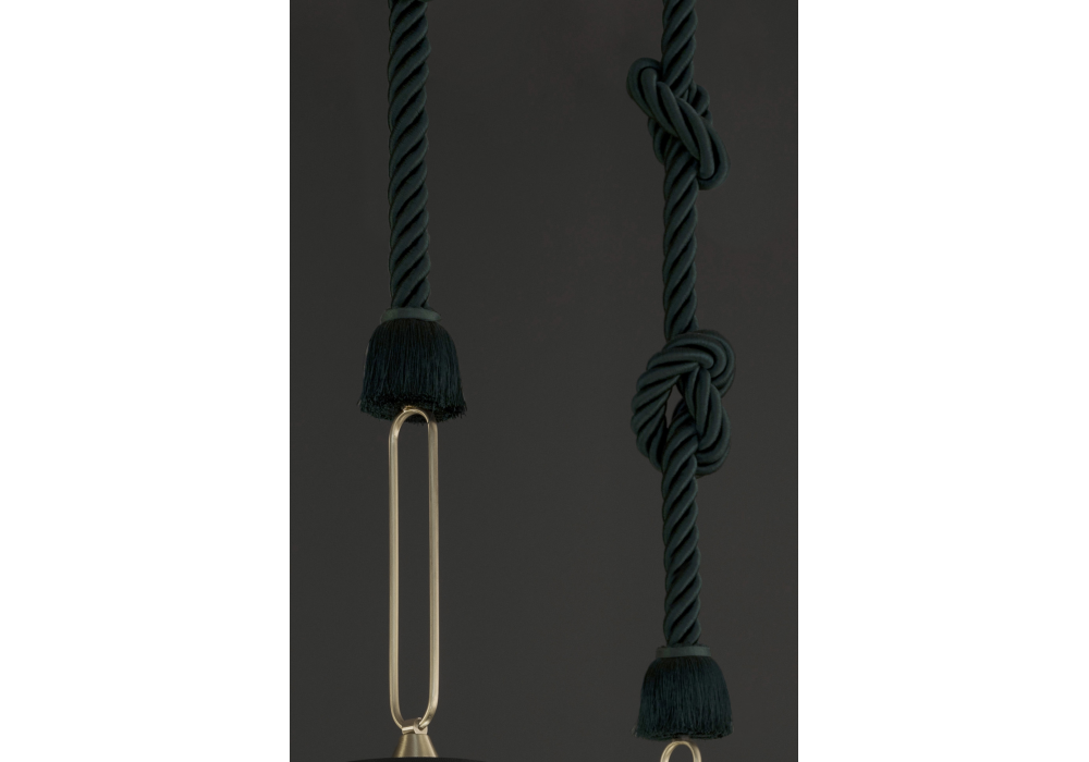 Calypso Guadaloupe von Servomuto für Contardi entworfen, ist eine Hängeleuchte mit einer Metalltragekonstruktion, einem gewebten Seidenkabel, einem Diffusor aus transparentem Glas und einem Lampenschirm in verschiedenen Ausführungen.