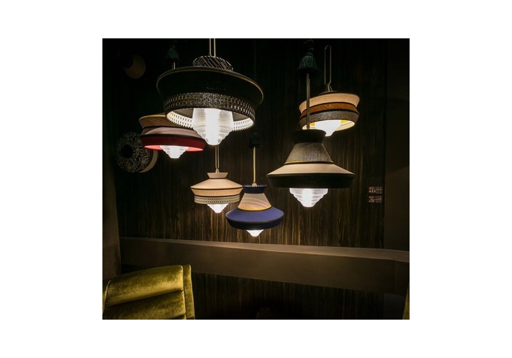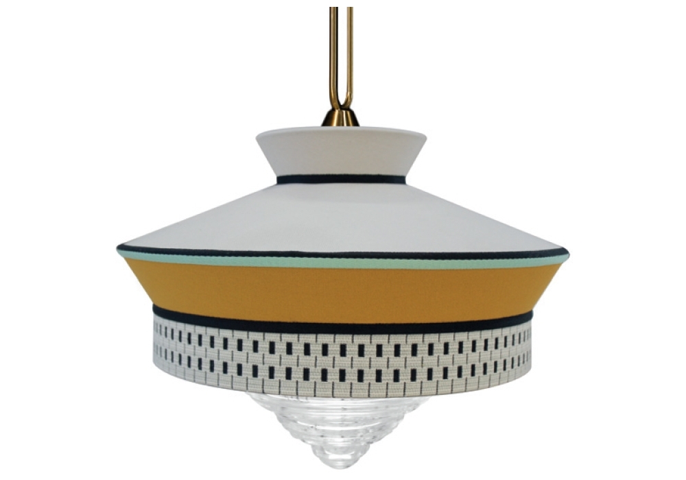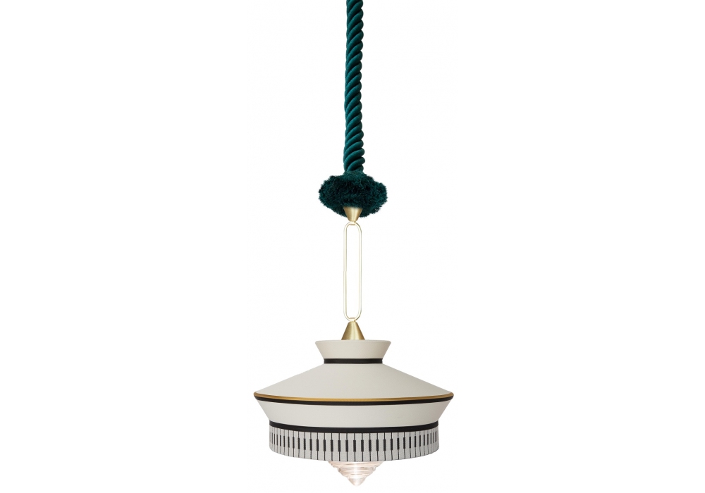 Calypso Martinique von Servomuto für Contardi entworfen ist eine Hängeleuchte mit Tragstruktur aus satiniertem Messing und Aufhängekabel aus moosgrüner gewebter Seide. Der Lampenschirm besteht aus Stoff und verfügt über einen transparenten Glasdiffusor. Die verwendete Lichtquelle ist eine E27-LED-Fassung. Calypso Martinique ist in verschiedenen Ausführungen erhältlich.