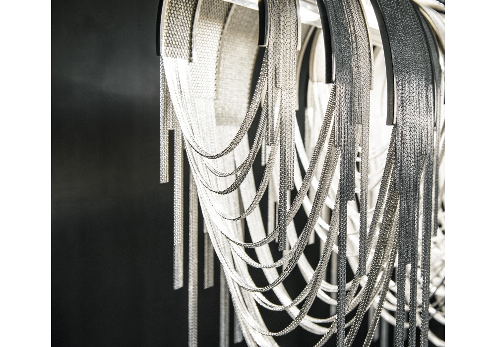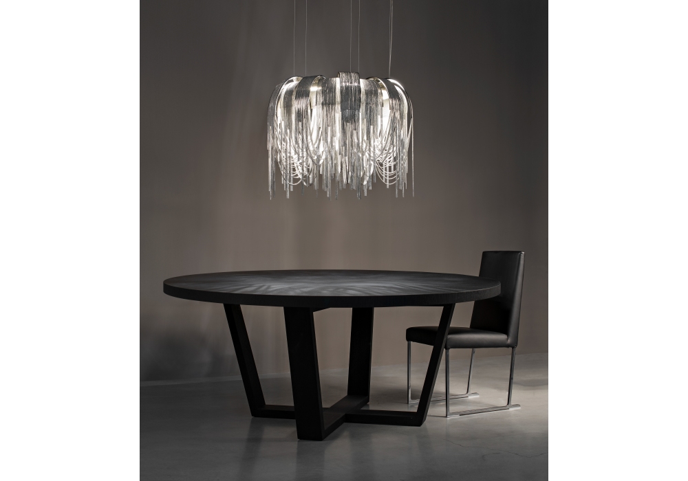 Volver, von Studio 14 für Terzani entworfen, ist eine Hängeleuchte mit tragender Struktur und Netzanhängern aus plattiertem Metall in verschiedenen Farben. Die Lichtquelle ist eine integrierte LED dimmbar in verschiedenen Lichtschattierungen. Volver ist in verschiedenen Modellen und Ausführungen erhältlich.
