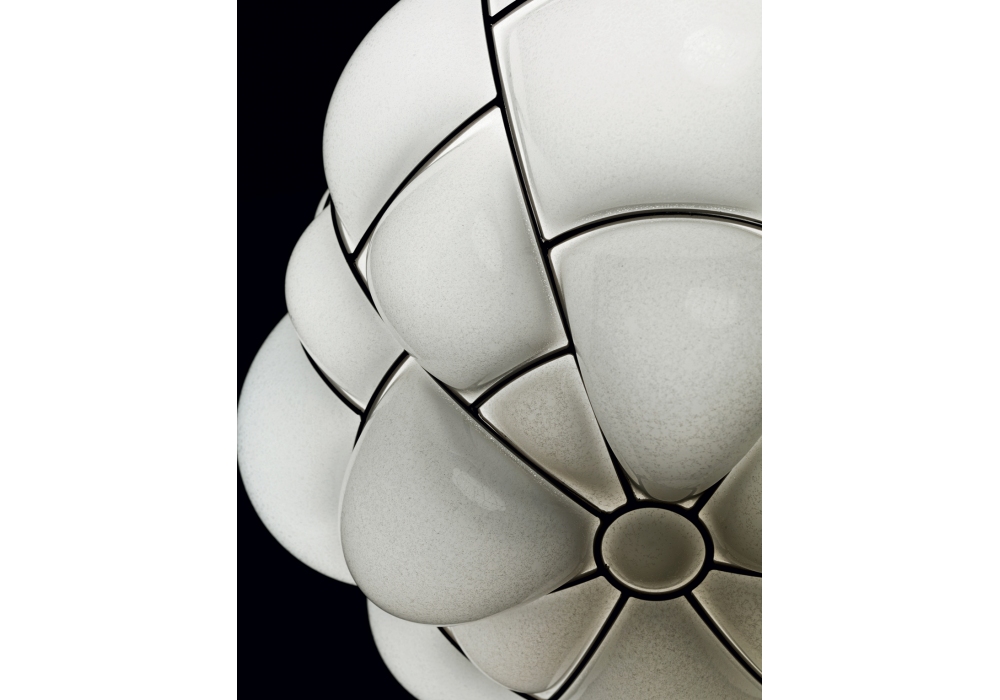 Egg designed by Enrico Franzolini for Pallucco is a beautiful pendant lamp. Its eccentric design which brings back an ancient craft technique, the glass blowing in a cage, to create a luminous, amber and organic. The blowing gives the glass slight irregularities in the shape and tiny bubbles of air which appear to float in the material, making each single creation unique. The exposed metal structure, with its graphic play, gives this lamp a strong personality even when switched off.