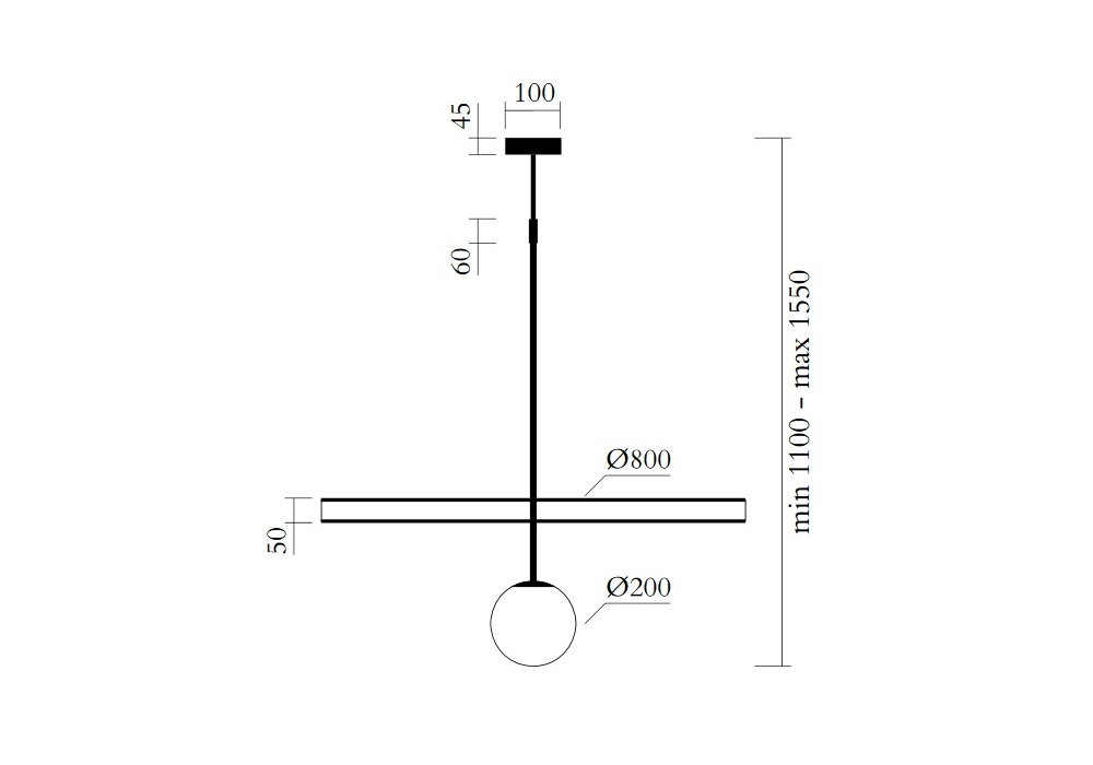 | Leuchtmittel | • Ing: Built in LED 46W • Input voltage EU: 230V • Input voltage US: 110V • Output voltage: 24V 2700K • Globe Ø 200: 1 x E27 LED 10W max (US: E26) |