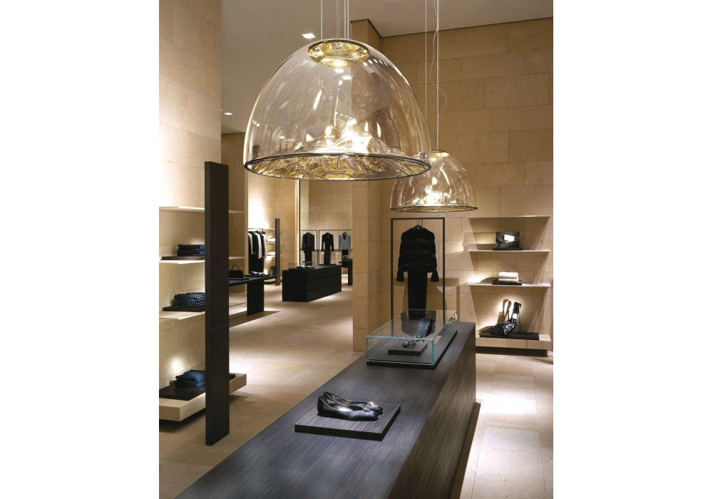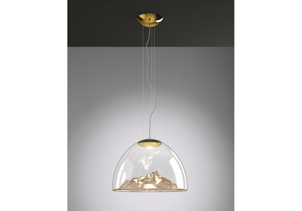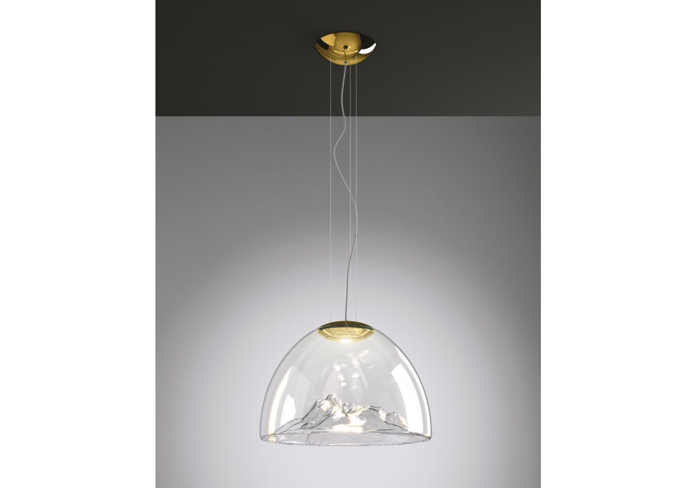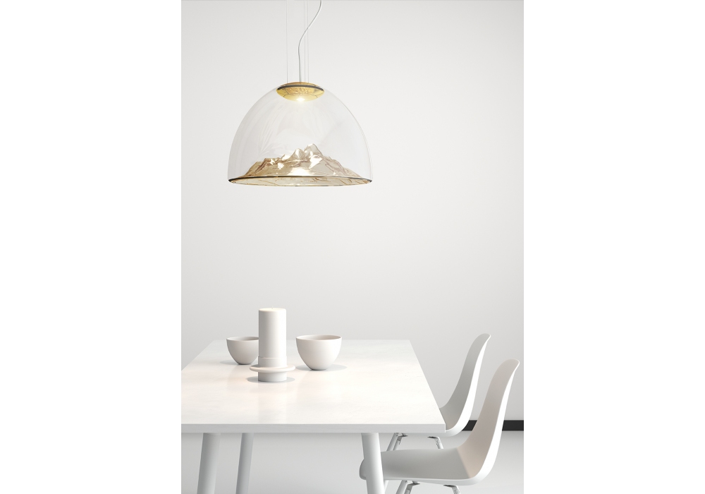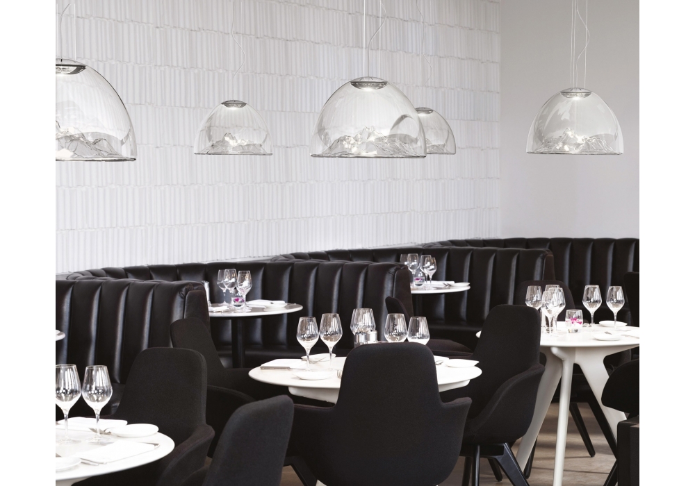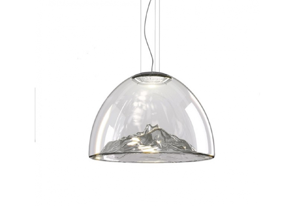 Mountain View von Dima Loginoff für Axo Light entworfen, ist eine schöne Pendelleuchte, die in 4 verschiedenen Ausführungen erhältlich ist. Sie besteht aus transparentem, mundgeblasenem Glas, das von Meisterhand gefertigt wird, und ist mit einer eingebauten 18-W-LED-Lichtquelle ausgestattet. Schutzindex IP 20.