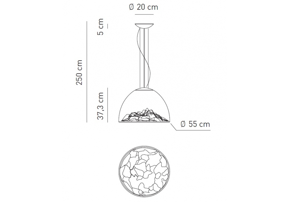 | Abmessungen | • Ø 55 cm x H 37.3 cm; Hmax 250 cm |