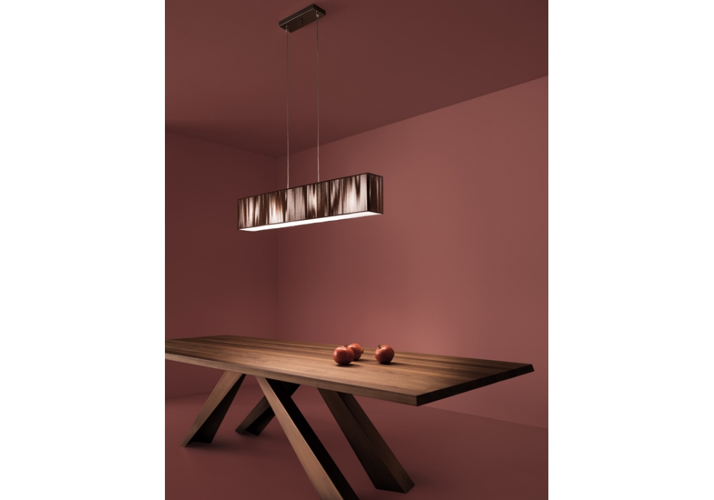 Clavius von Manuel Vivian für Axo Light entworfen, ist eine Pendelleuchte mit Metallrahmen und handgefertigtem Lampenschirm mit seidigen Fäden. Erhältlich in verschiedenen Ausführungen.