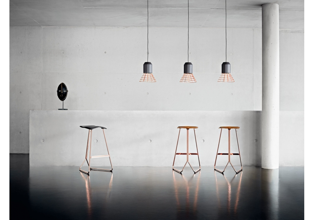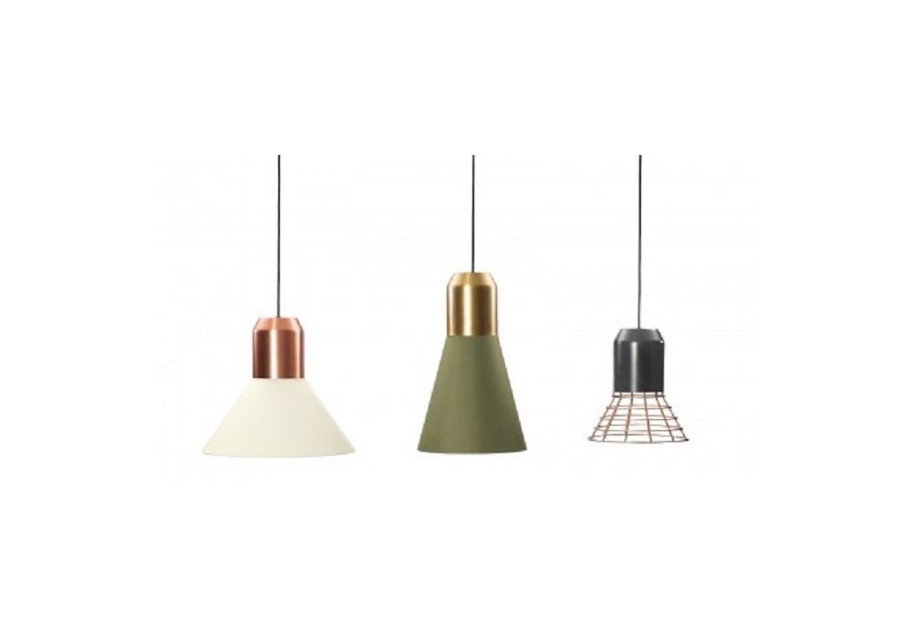 Bell von Sebastian Herkner für ClassiCon entworfen, ist eine Hängeleuchte die kann beliebig mit den schlichten, zylindrischen Fassungen in Grau, Messing oder Kupfer kombiniert und einfach zusammengeschraubt werden. Mit verschiedenen Materialien, Strukturen und Farben schaffen sie ganz unterschiedliche Lichtstimmungen.
