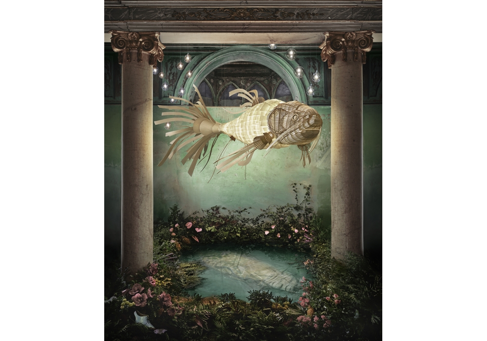Koi LS designed by Inocuo The sign & LZF Lab for LZF is a pendant lamp made of wood. The inspiration for this wonderful idea came from an interlacing wood system and the transparencies it produced when lit. The system, consisting in the overlaying of wooden slats as if they were fish scales, is called the “Koi Fabric”, and was used for making iluminated walls. Available in two finishes.