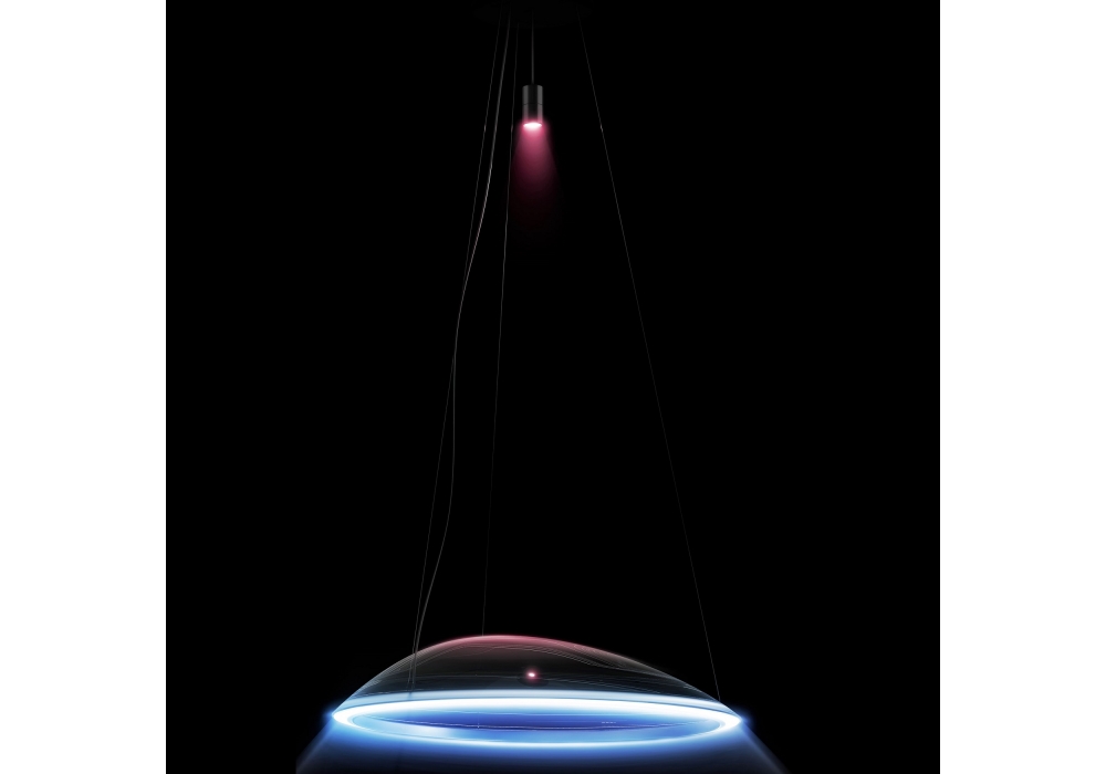 Ameluna von Artemide und Mercedes-Benz für Artemide entworfen ist eine runde Hängeleuchte aus transparentem Methacrylat und Aluminium. Die Optik wird mit einem Aluminiumstreifen kombiniert, der die verschiedenen LEDs mit einem Dimmbarkeitssystem oder aus der Ferne über die Artemide-App unterstützt. Ameluna ist in verschiedenen Ausführungen heller Farbtöne erhältlich.