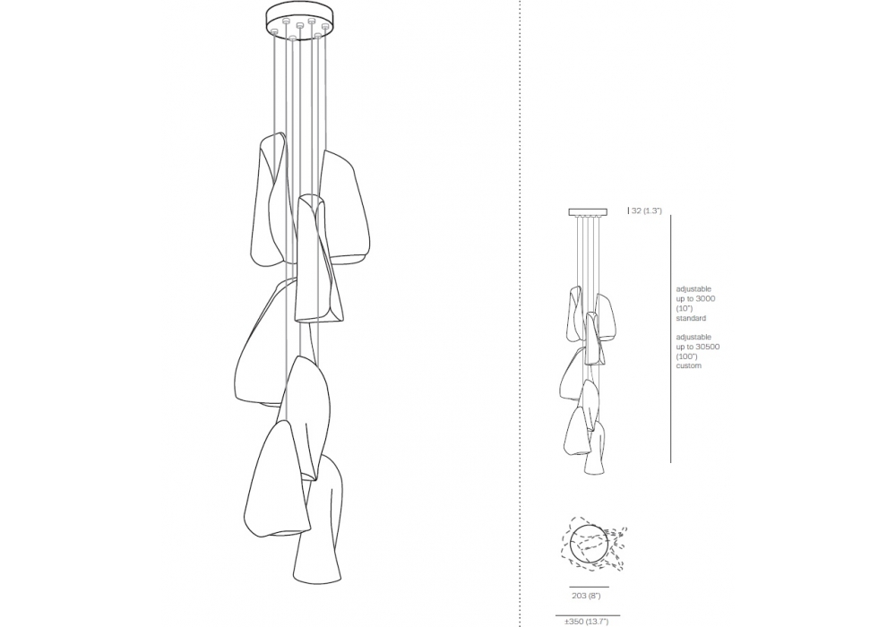 21.7 von Omer Arbel für Bocci entworfen, ist eine Pendelleuchte mit sieben Pendeln. Jeder einzelne Anhänger besteht aus dünnen Porzellanblättern, die sich um einen Diffusor aus Borosilikatglas wickeln. Das Ergebnis ist ein einzigartiges Produkt. Jeder Anhänger nimmt in einem größeren Kontext eine skulpturale Form an. Erhältlich in zwei Versionen 21.7 Cluster und 21.7.