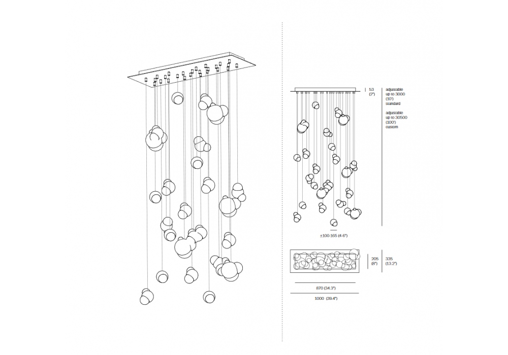 57.26 von Omer Arbel für Bocci entworfen, ist eine Pendelleuchte mit sechsundzwanzig Diffusoren. Die Serie 57 ist eine Kollektion von Pendelleuchten, bei denen jede Pendelleuchte das Ergebnis einer innovativen Fertigungstechnik ist, die das Produkt in Bezug auf Material und Form einzigartig macht. Es besteht im Einschließen und Einblasen von Luft in die geschmolzenen Glaskomponenten, die sich anschließend miteinander verbinden. Eine Kombination aus Innovation und Handwerkskunst. Erhältlich in vier Versionen: Rectangle, Square, Round und Round dezentral mit vier verschiedenen Diffusoren.
