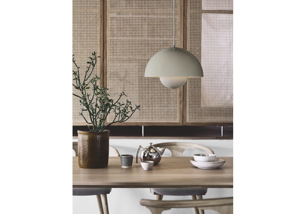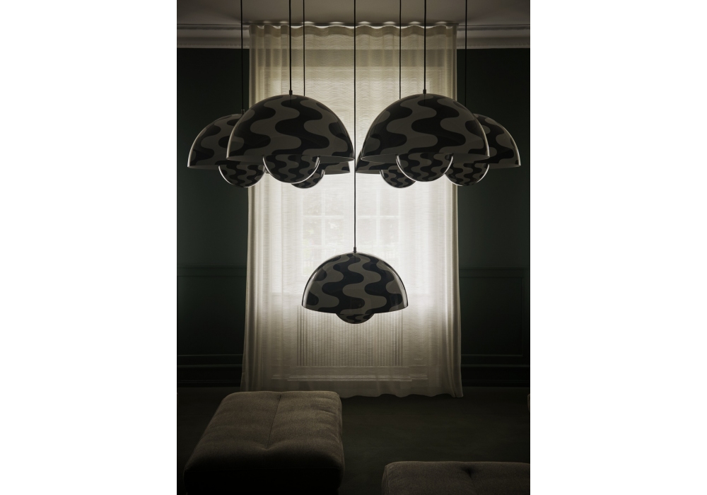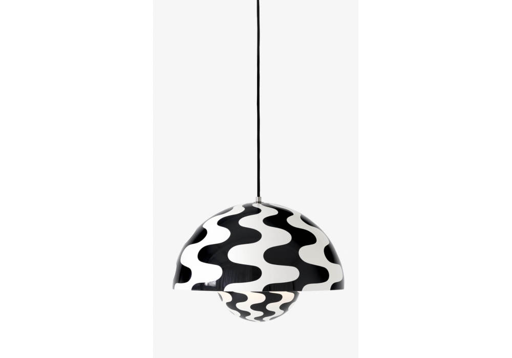 Flowerpot von Verner Panton für &Tradition entworfen, ist eine Hängeleuchte aus lackiertem oder plattiertem Stahl und Stoffkabel. Verfügbar in mehreren Ausführungen.