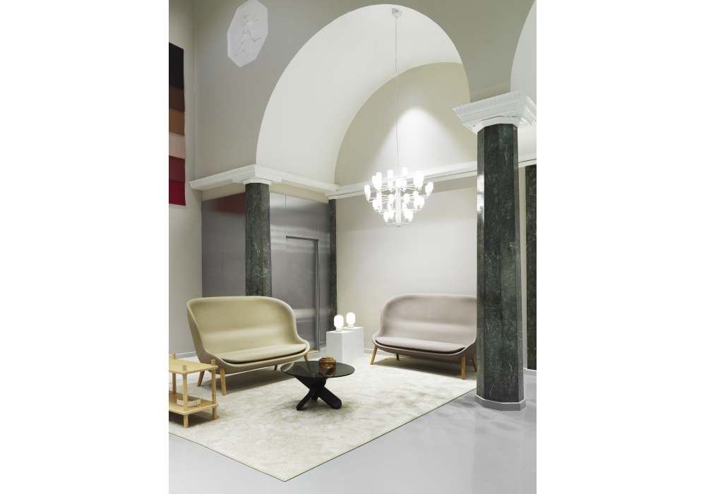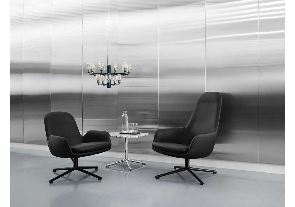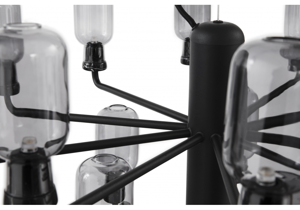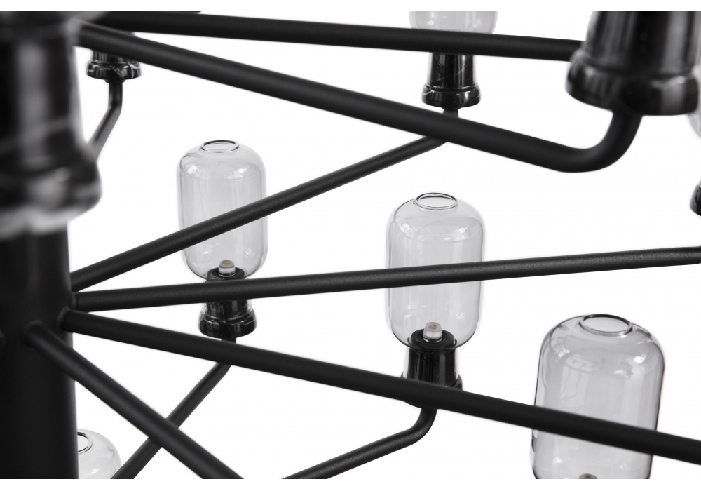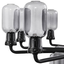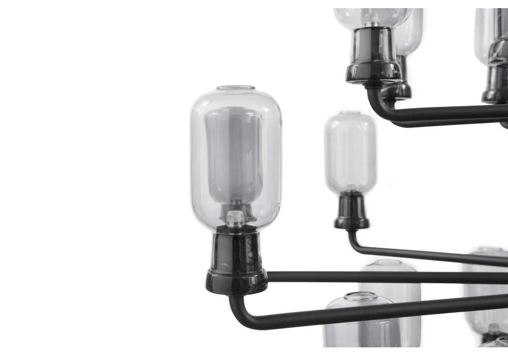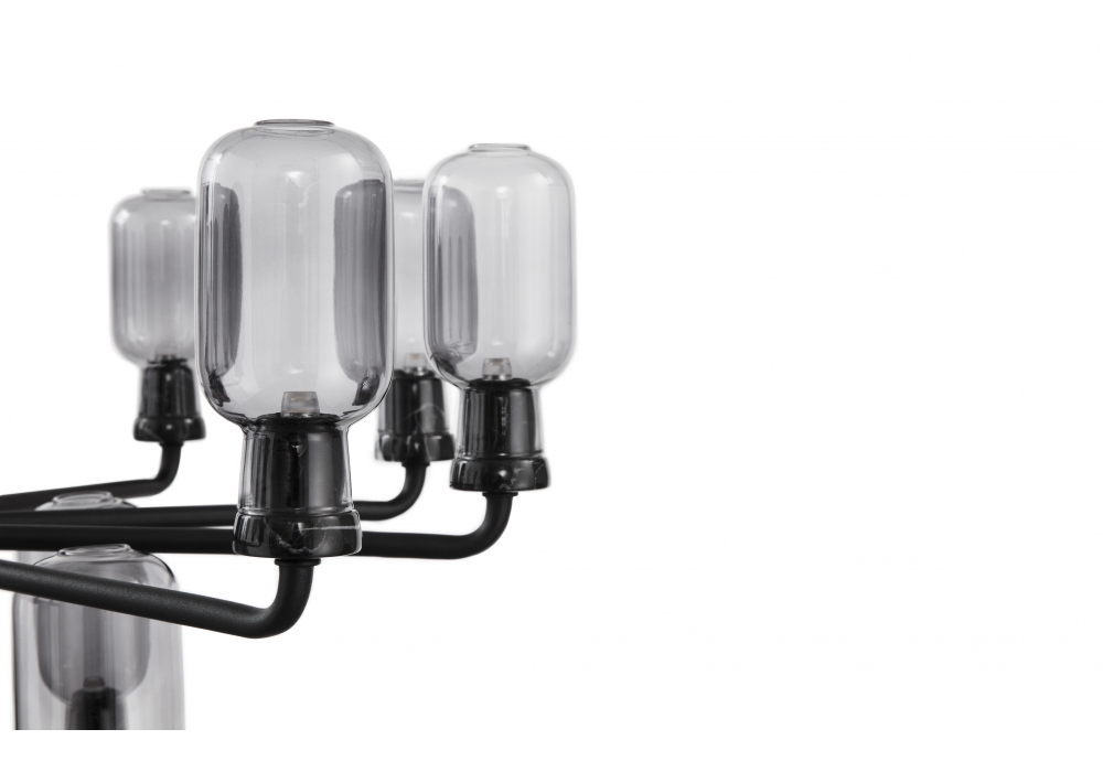Amp, entworfen von Simon Legald für Normann Copenhagen, ist eine Hängeleuchte aus Metall, Marmor und Glas. Amp Chandelier besteht aus einer raffinierten Kombination aus Marmor und hellem Glas und besteht aus einem zentralen Stahlzylinder, von dem kurze Arme abzweigen, wobei auf jedem Arm ein zylindrischer Glasdiffusor steht, auf dem sich eine LED-Lichtquelle befindet (nicht im Lieferumfang enthalten). Amp ist in drei verschiedenen Ausführungen und zwei Größen erhältlich.