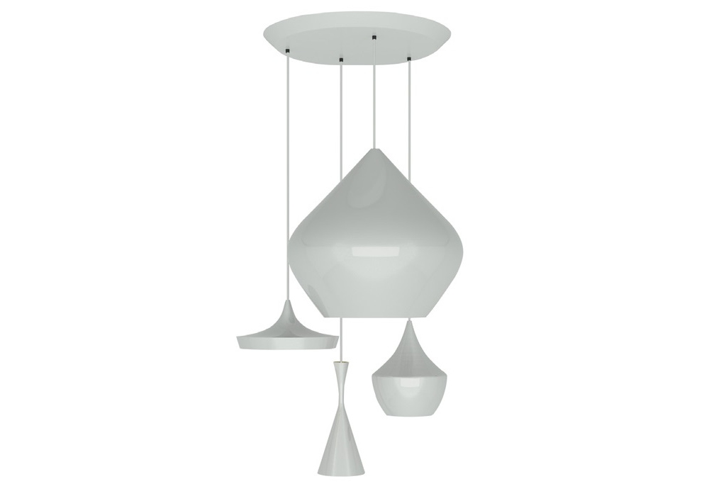 Beat Range Round von Tom Dixon entworfen, ist ein Hängesystem bestehend aus vier Messinglampen. System in verschiedenen Ausführungen erhältlich.