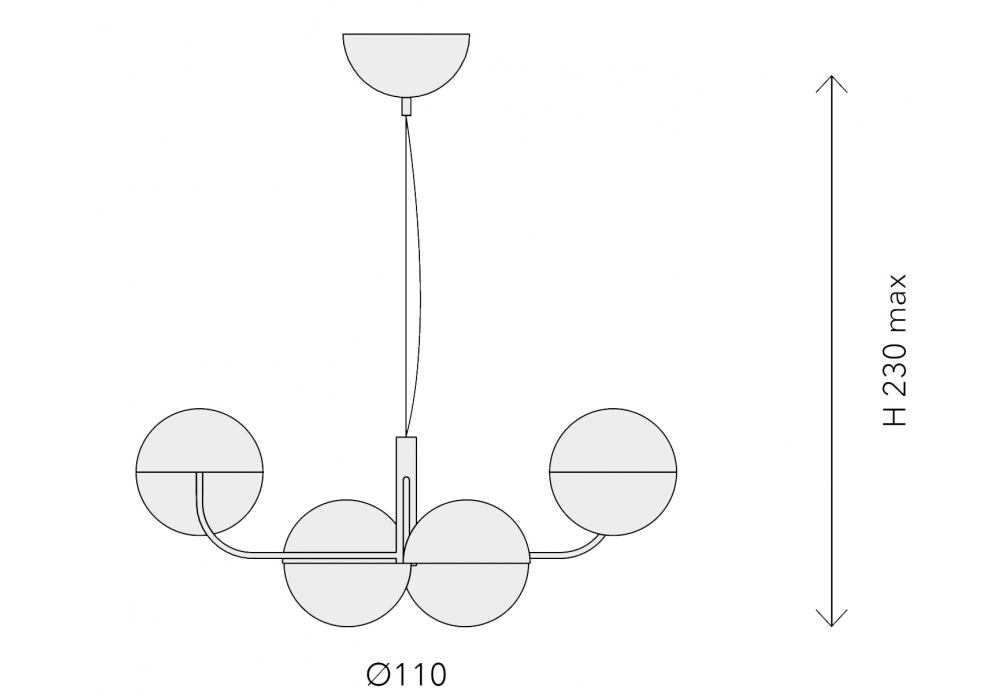 Elisabeth von Carlo Colombo für Penta entworfen, ist eine Hängeleuchte mit Metallstruktur in glänzendem Schwarzchrom-Finish. Die Diffusoren sind Halbkugeln aus Metall und schirmen eine dimmbare LED-Lichtquelle ab.