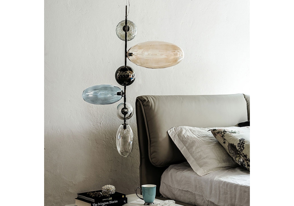 Topaz, von Andrea Lucatello für Cattelan Italia entworfen, ist eine Hängeleuchte mit Gestell in schwarz verchromtem Stahl. Schirm in Borosilikatglas transparent, fumé, blau und bernstein. Verfügbar in zwei verschiedenen Abmessungen und in den Versionen 220V und 110V. Leuchtmittel enthalten.