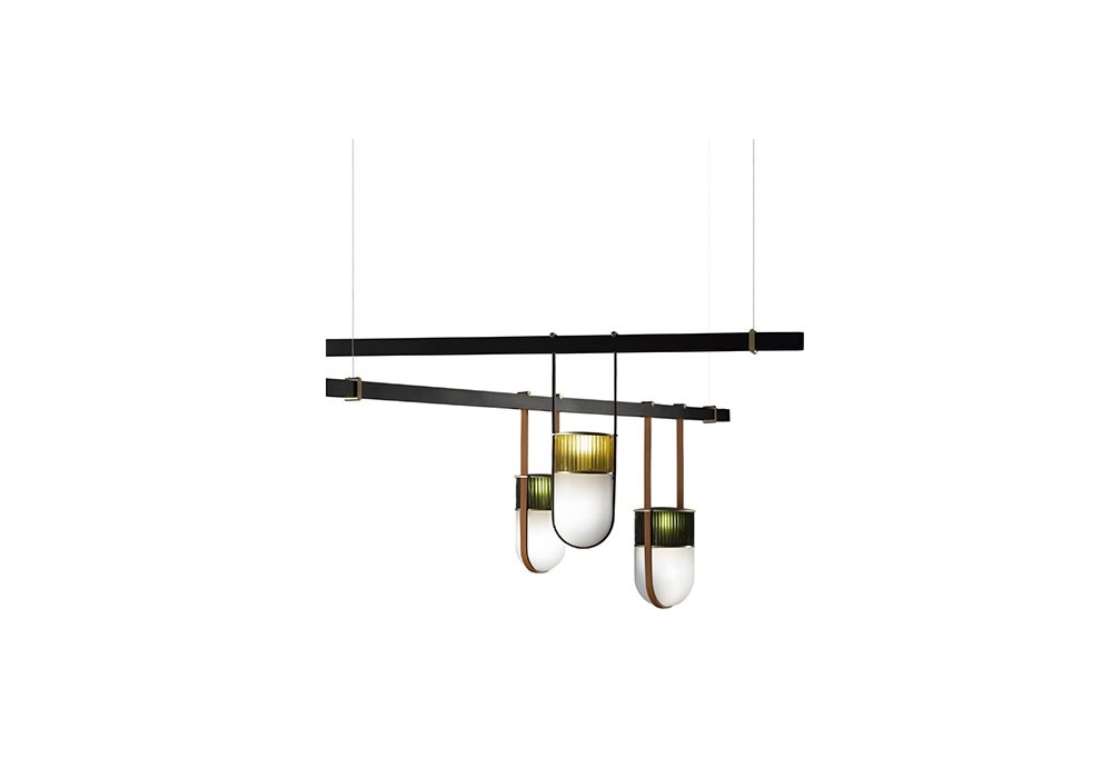 Xi von Neri & Hu für Poltrona Frau entworfen, ist eine Hängeleuchte verfügbar in verschiedenen Kompositionen. Die Leuchten sind verfügbar in 2 Größen und dank eines Saddle Extra-Lederbands sind sie sehr hilfreich.