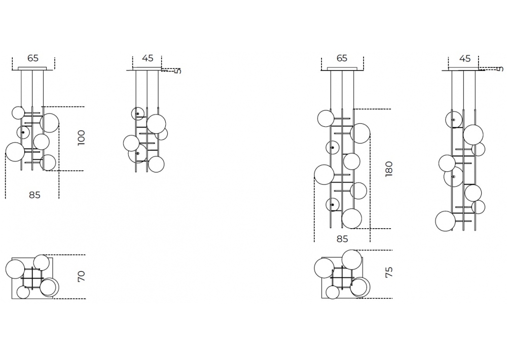 Bolle Tela von Massimo Castagna für Gallotti&Radice entworfen, ist eine Hängeleuchte mit dimmbarer LED-Lichtquelle. 8 Geblasene Klarglaskugeln. Verfügbar auch Ausführung mit 6 Kugeln Metallteile Messing handbruniert. Die Messingoberfläche erscheint fleckig und ungleich. Ein Kabel von 4 Mt inklusiv. Leuchtmittel (LED) inklusiv.