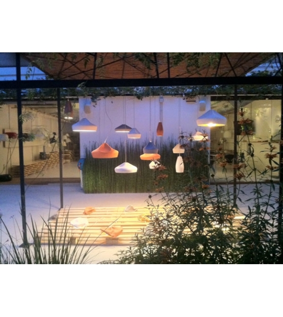 Pleat Box 24 von Xavier Mañosa & Mashallah für Marset entworfen, ist eine Hängeleuchte aus Keramik in verschiedenen Ausführungen, Innenteil aus leuchtend weißer oder goldener Emaille.