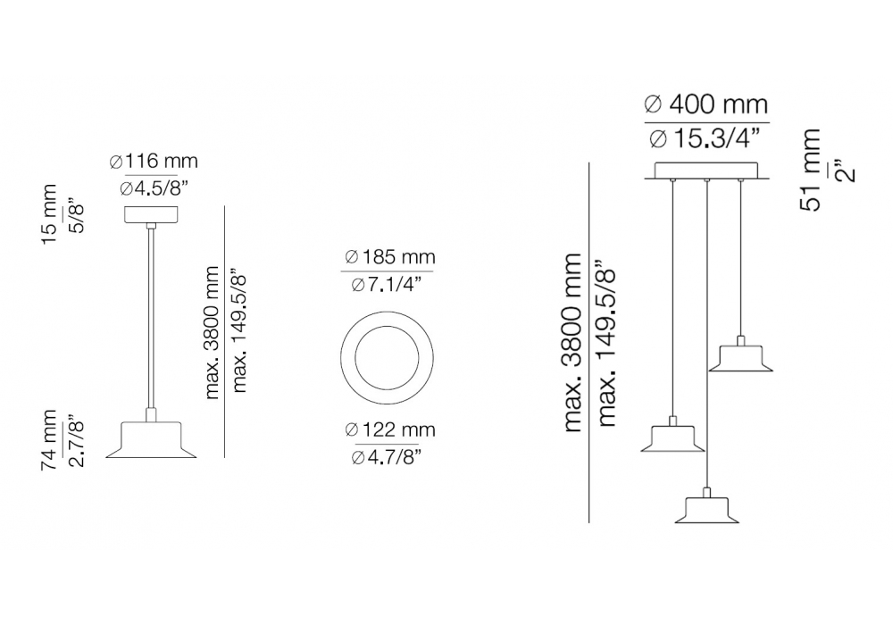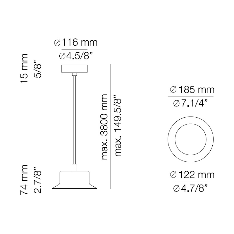 | Abmessungen | Ø 18,5 x H 7,4 cm; Ø 40 x H 380 cm. |