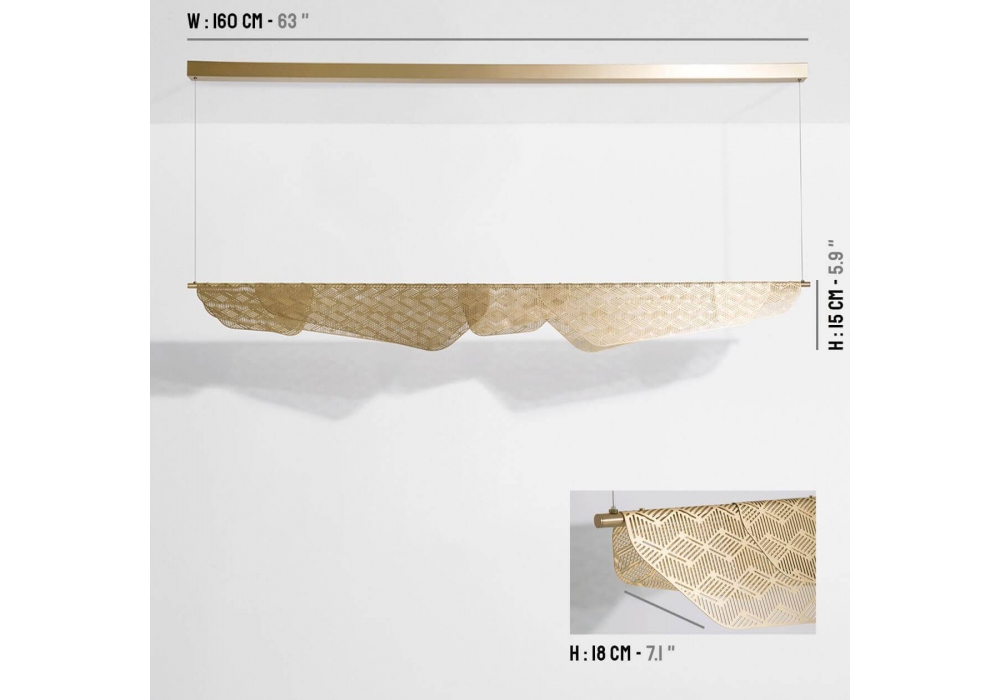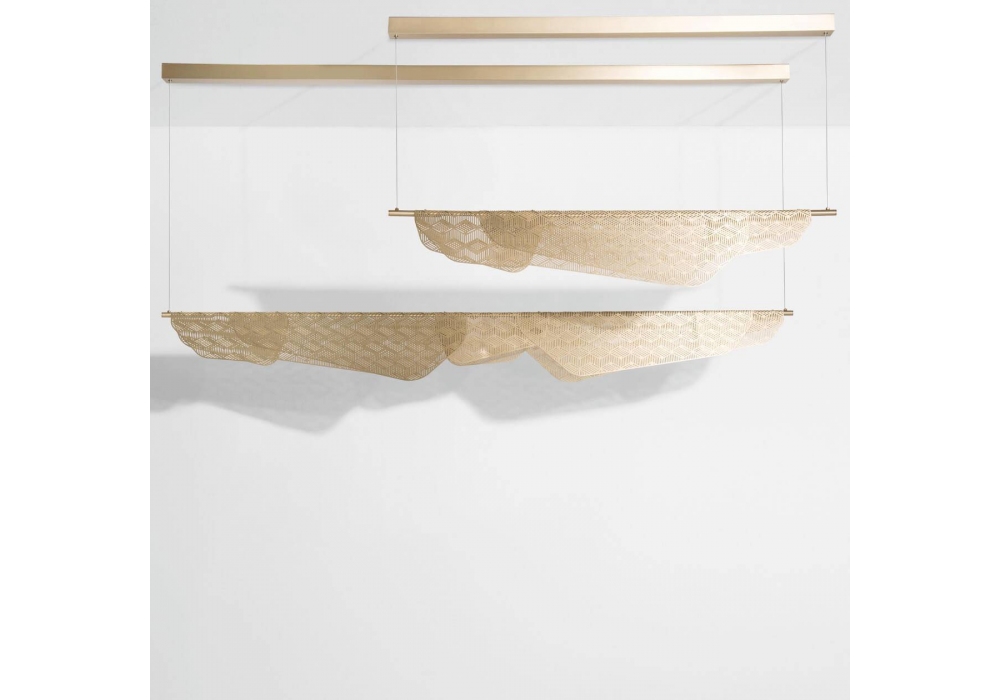 Mediterranea von Noé Duchaufour Lawrance für Petite Friture entworfen, ist eine Hängeleuchte mit integrierter LED aus satiniertem gebürstetem Messing. Verfügbar in zwei Abmessungen.