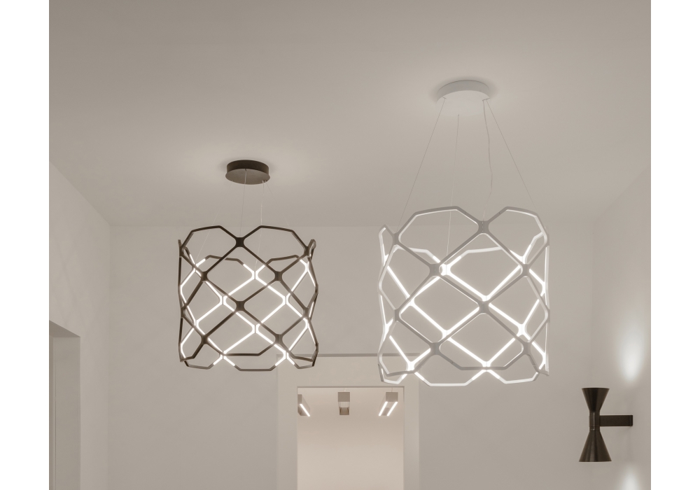 Titia, von Arihiro Miyake für Nemo entworfen, ist eine Hängeleuchte in zylindrischer Form mit Rautenperforation aus lackiertem thermoplastischem Material. Die verwendete Lichtquelle ist vom dimmbaren LED-Typ. Titia ist in verschiedenen Ausführungen erhältlich.