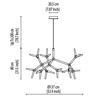 Sparks von Daniel Becker für Quasar entworfen ist eine modulare Hängeleuchte mit einer verzweigten Aluminiumstruktur mit um 360° drehbaren Modulen in verschiedenen Ausführungen. Die Lichtquellen sind LED. Sparks ist in verschiedenen Modellen und auf Wunsch auch in einer dimmbaren Version erhältlich.