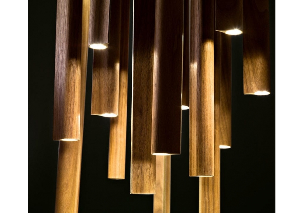 Leaf von Giancarlo Bosio & Centro Ricerche für Giorgetti entworfen, ist eine Hängeleuchte aus Nussbaum Canalaletto oder aus Kernleder. Auch verfügbar in verschiedenen Ausführungen.
