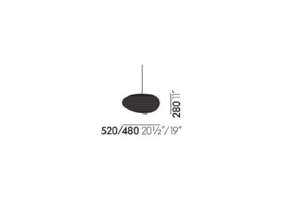 Akari 16A von Isamu Noguchi für Vitra entworfen, ist eine Hängeleuchte, die Teil einer Serie von Lampen ist, die von japanischen Kunsthandwerkern aus traditionellem Washi-Papier handgefertigt werden. Der Name stammt von dem japanischen Wort 'Akari', was 'Licht' bedeutet und sowohl Beleuchtung als auch physische Leichtigkeit bedeutet.