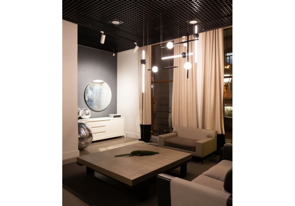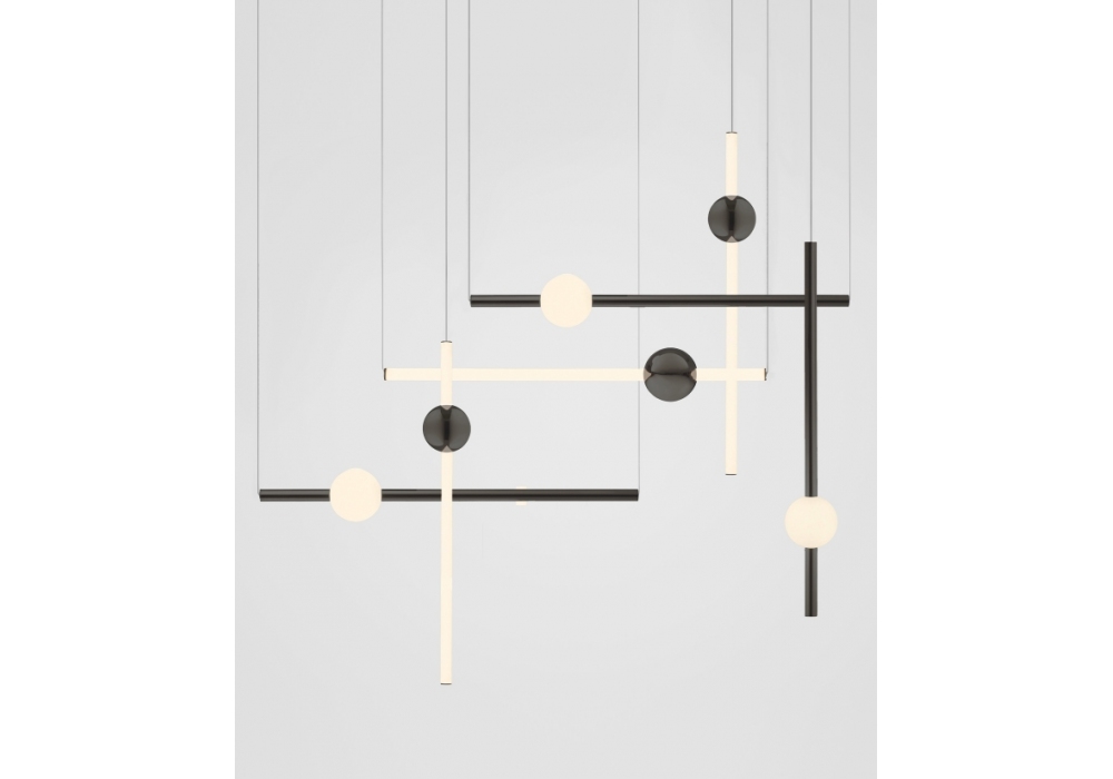 Orion Globe Light, produziert und signiert von Lee Broom, ist eine Hängeleuchte aus einem Stahlrohrstab und einer Opalglaskugel. Die gewählte Lichtquelle ist vom dimmbaren LED-Typ. Orion Globe Light ist in verschiedenen Ausführungen erhältlich.