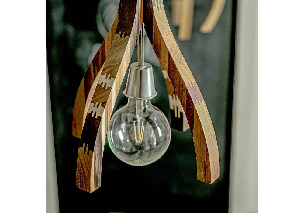 Puppulamp Chroma von Ornythos entworfen, ist eine Holz Hängeleuchte. Die Sammlung umfasst drei verschiedene Größen und verschiedene Holzarten.