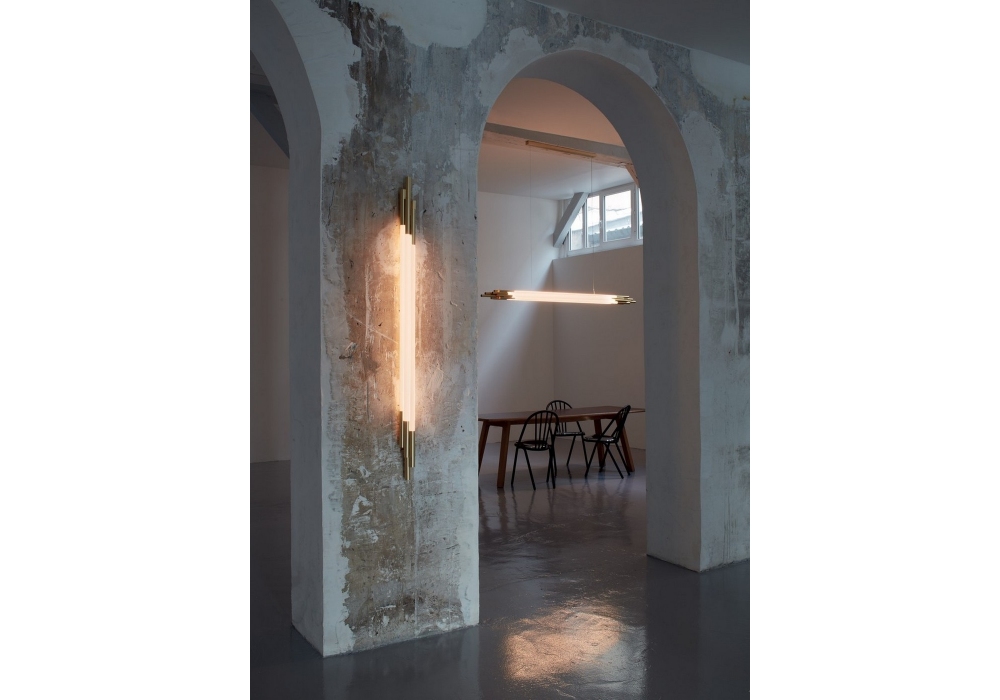 Org Horizontal von Sebastian Summa für DCW Éditions entworfen, ist eine Hängeleuchte aus eloxiertem Aluminium und Opalglas. Verfügbar in 3 Abmessungen.