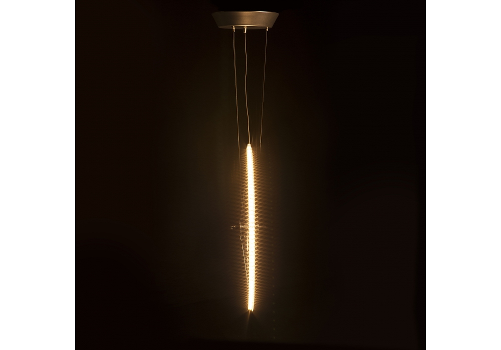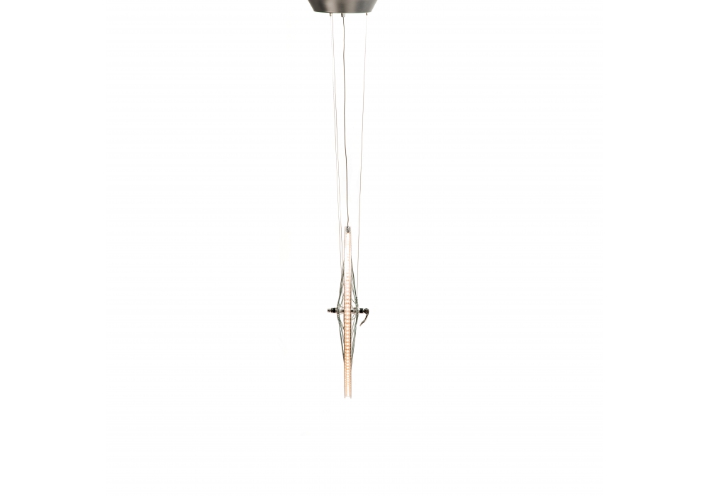 Eddy von Fabio Antinori für Cyclampa entworfen, ist eine Pendelleuchte aus Aluminium. Die Leuchte besteht aus Aluminiumgussrad, original Fahrradbauteil. Hochleistungs Ledstrip, ausgestattet mit integriertem Thermal Control Chip. Deckenbefestigung mit 3 höhenverstellbaren Stahlseilen, verankert auf einem lackierten Aluminiumstift, Ledstrip-Treiber an Bord.