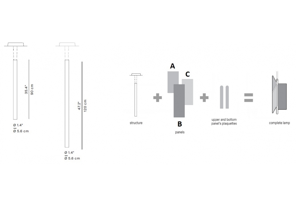 Trypta von Stephen Burks für Luceplan entworfen, ist eine Hängeleuchte, die aus einem zentralen zylindrischen Körper aus schwarzem extrudiertem Aluminium oder mattem Aluminium besteht, um den herum drei Paneele mit einem Aluminiumrahmen gegliedert sind, der mit Akustikmaterial und flammhemmendem Strickstoff überzogen ist. Der zylindrische Körper ist mit zwei LED-Quellen für direkte und indirekte sowie diffuse Lichtemission ausgestattet. Verfügbar in verschiedenen Ausführungen und Abmessungen.