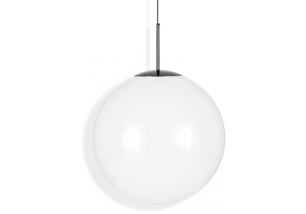 Globe Opal von Tom Dixon ist eine LED-Pendelleuchte aus Polycarbonat mit weißem Opal-Finish. Es ist in zwei Durchmessern erhältlich: 50 cm und 25 cm.