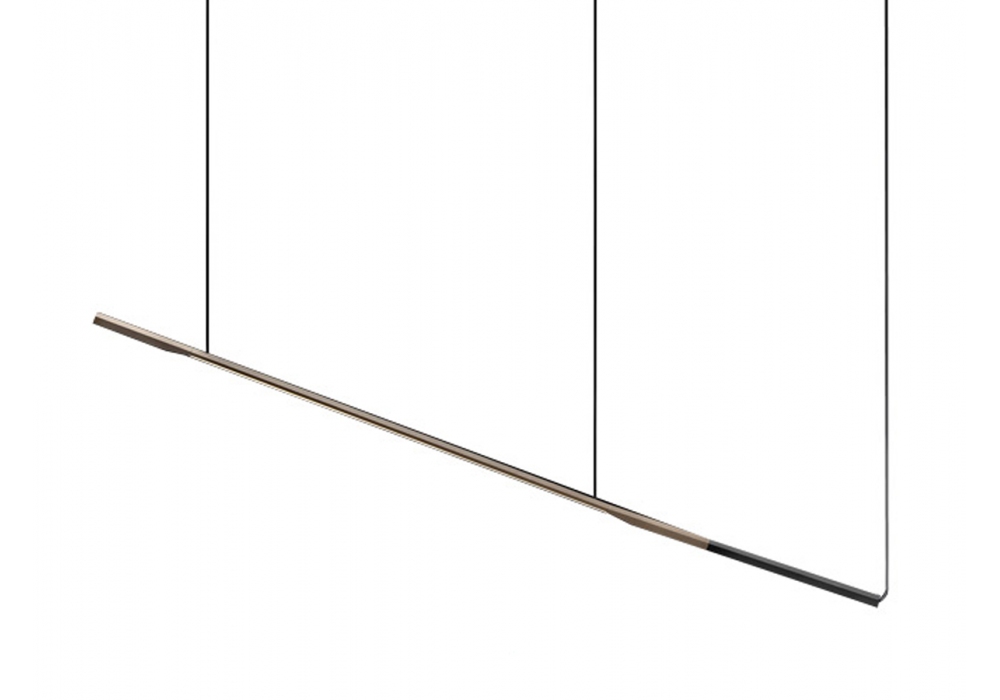 Ilo von David Lopez Quincoces für Oluce entworfen ist eine Hängeleuchte mit einem geformten Element aus eloxiertem Aluminiumstab in satinierter Bronzefarbe. Die verwendete Lichtquelle ist vom LED-Typ.