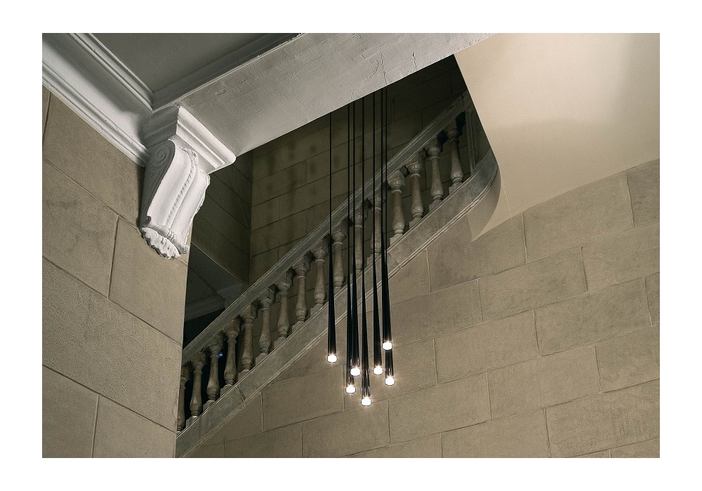 Slim von Jordi Vilardell für Vibia entworfen ist eine runde Hängeleuchte mit einer tragenden Struktur und einer Rosette aus Stahl. Der Diffusor besteht aus Glas und schirmt eine LED-Lichtquelle ab, die in verschiedenen Ausführungen dimmbar sein kann. Die Anhänger haben eine zylindrische Form aus Glasfaser und Carbon. Slim ist in verschiedenen Modellen, Ausführungen, Farbtönen und dimmbaren Versionen erhältlich.