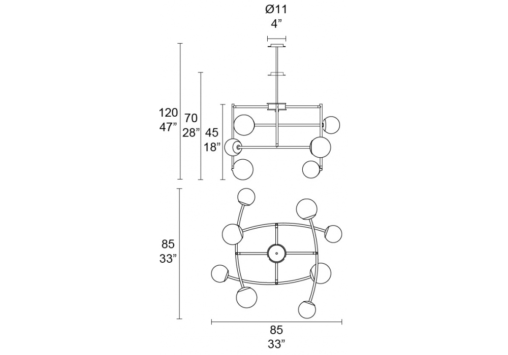 Arch 7252/8 von Matteo Valenti für MMLampadari entworfene, ist eine Hängelampe mit acht Diffusoren, deren Struktur in verschiedenen Varianten erhältlich ist.