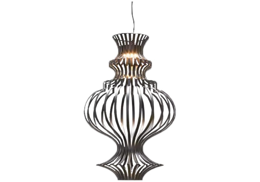 Cage 7080 von Ufficio Tecnico MMLampadari entworfen und hergestellt, ist eine Hängelampe aus mattschwarzem Metall mit LED-Platte, die in zwei Modellen erhältlich ist.