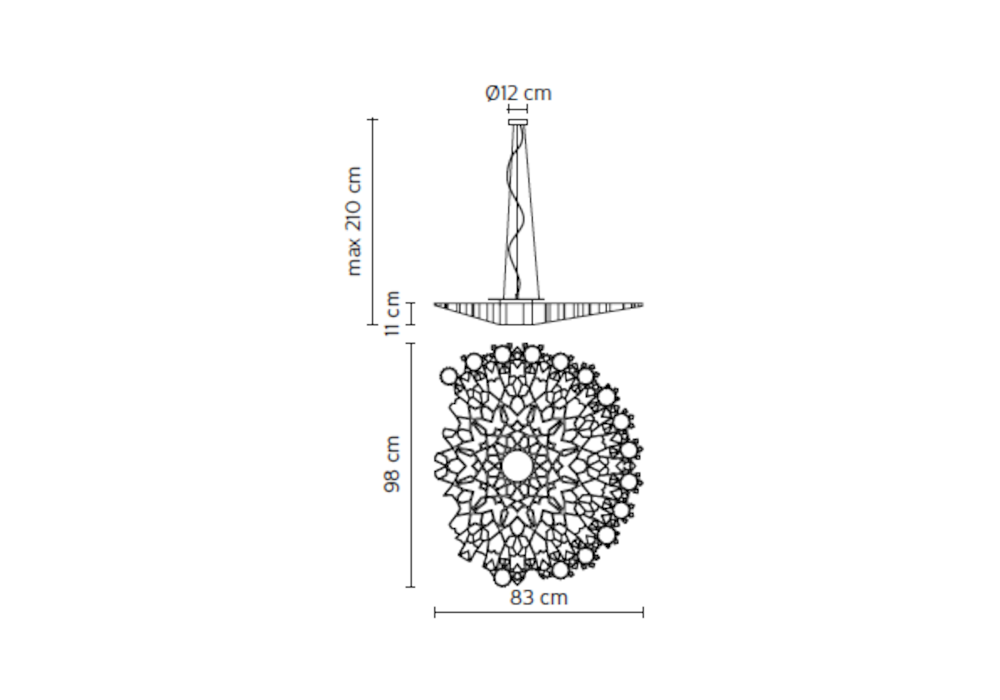 Notredame von Luca De Bono und Dario De Meo ist eine LED-Pendelleuchte mit Struktur aus goldenem oder weißem Technopolymer. Interne Benutzung.