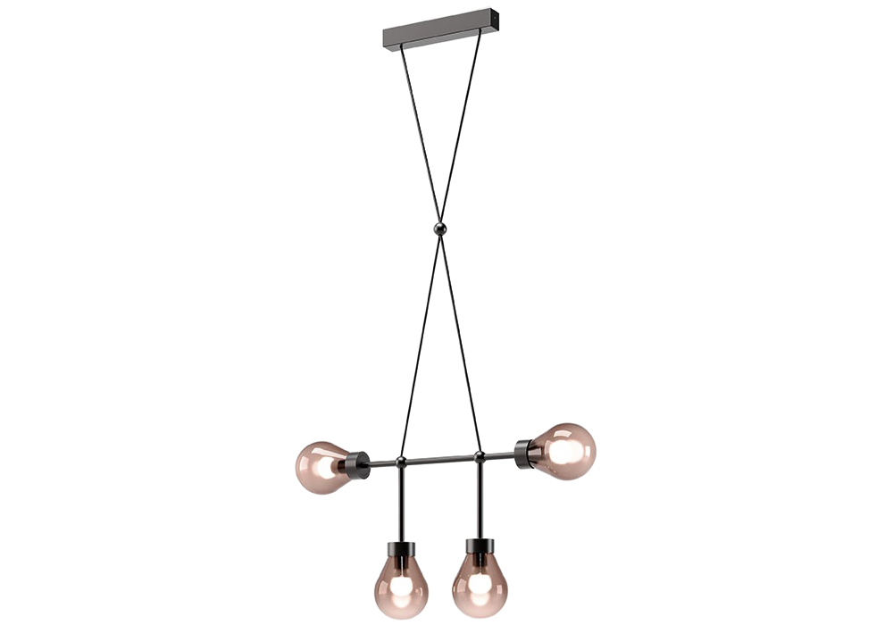 Zoe 7383 von Chiara Andreatti und Studio Salaris für MMLampadari entworfen, ist eine Hängeleuchte aus schwarz lackiertem Metall und pinkfarbenen Rauchglasdiffusoren. in verschiedenen Modellen erhältlich.